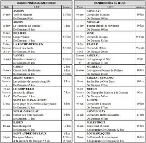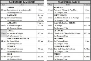 Heures de départ des randos : rendez-vous à 13h15, départ 13 h 30.